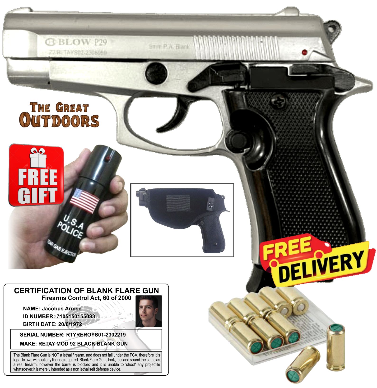 The Blow P29 Mini Beretta Self Defense Blank Gun is a non lethal alternative to a firearm which looks, feels, sounds and most importantly, works like a Real Firearm.